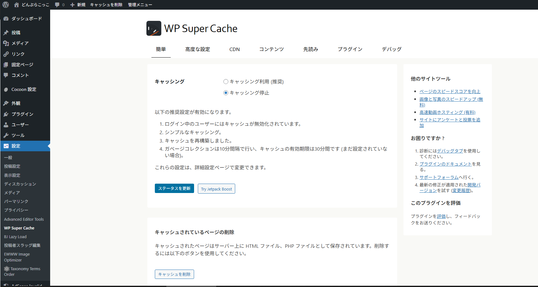ページキャッシュが検出されず、サーバーのレスポンスが遅くなっています」